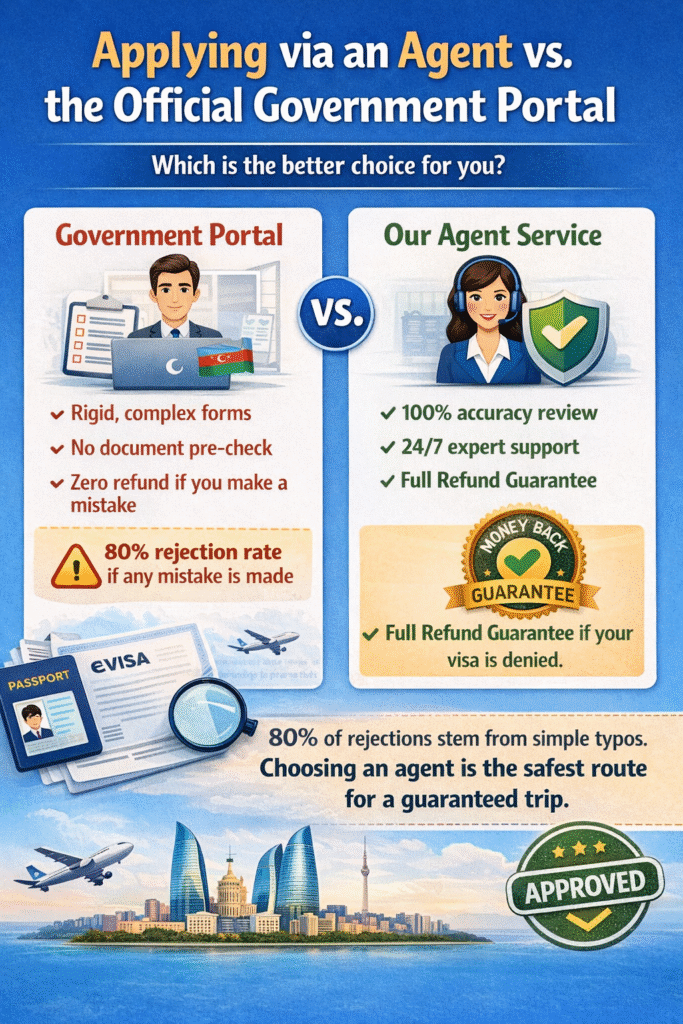 Many travelers wonder if they should use a professional service like azerbaijan-evisa.info or the official government site. Here is the difference: