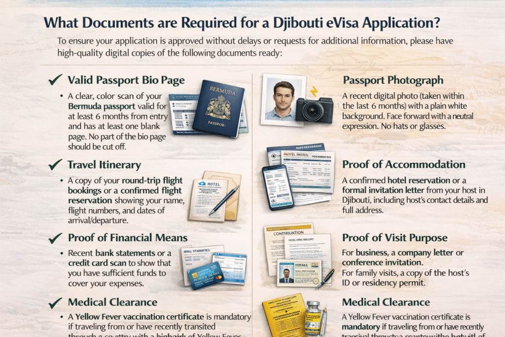 Yes, all travelers holding a Bermuda passport must obtain an eVisa before arriving in Djibouti. The eVisa is a mandatory digital authorization linked to your passport. It must be presented to immigration officers at Djibouti-Ambouli International Airport or other authorized border entry points. Without this pre-approved document, entry into the country may be denied.