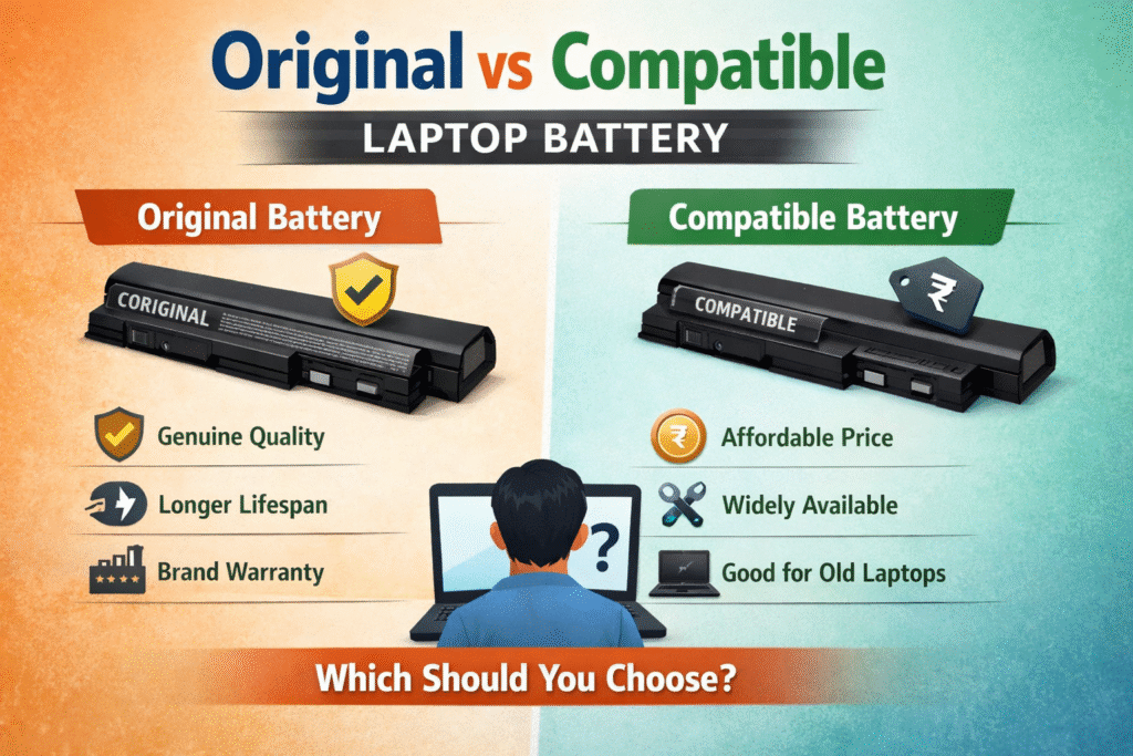 Both options can work well, but choosing the right one depends on your budget, laptop usage, and quality expectations. In this guide, we compare original vs compatible laptop battery options so you can make a smart buying decision.
