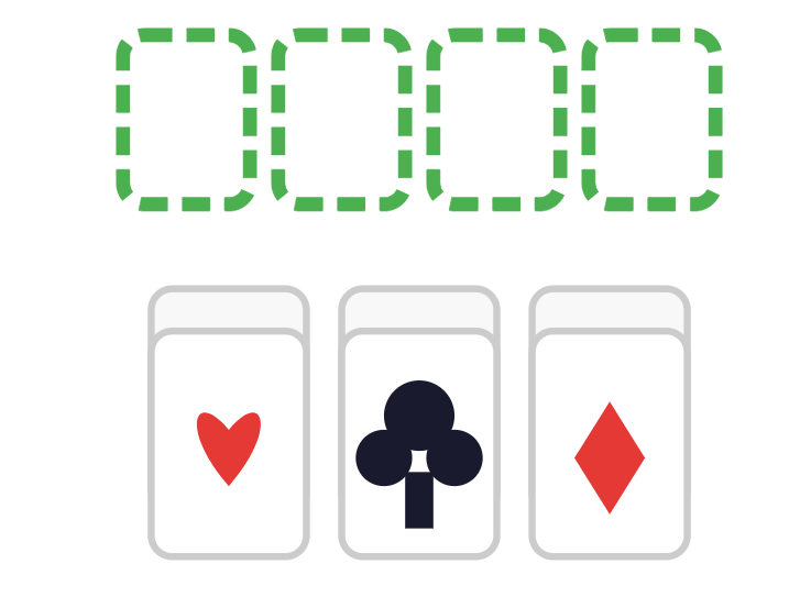 - Vain alimmaiset kortit ovat kuvapuoli ylöspäin.