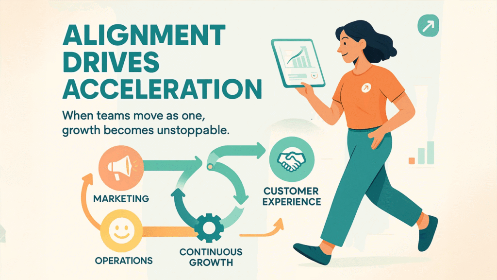 Because the future of growth marketing won’t just be a matter of market savvy, it will be about organizational harmony. Every department that touches the customer must move in unison. Marketing, sales, and operations are not separate, they are part of a continuous growth system.